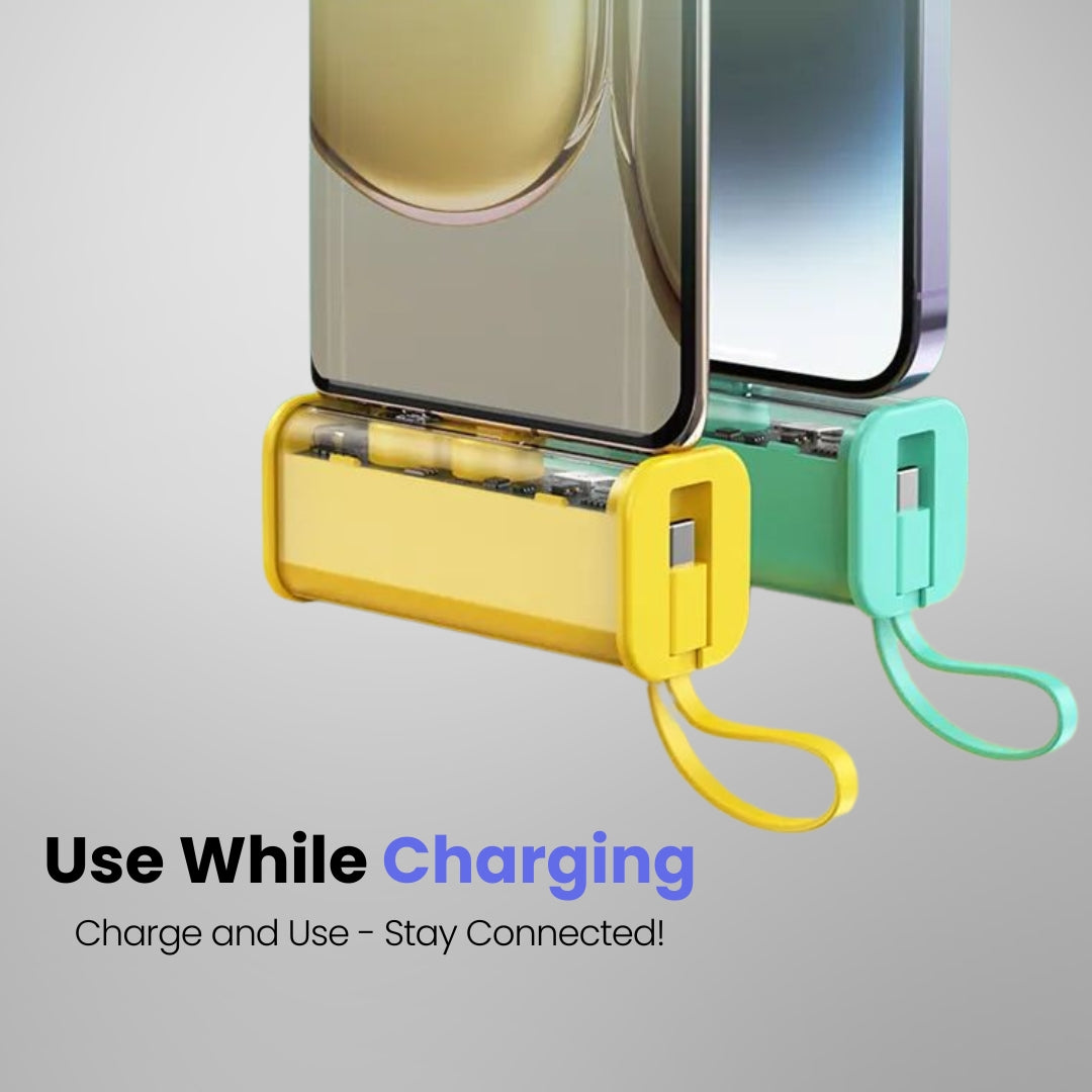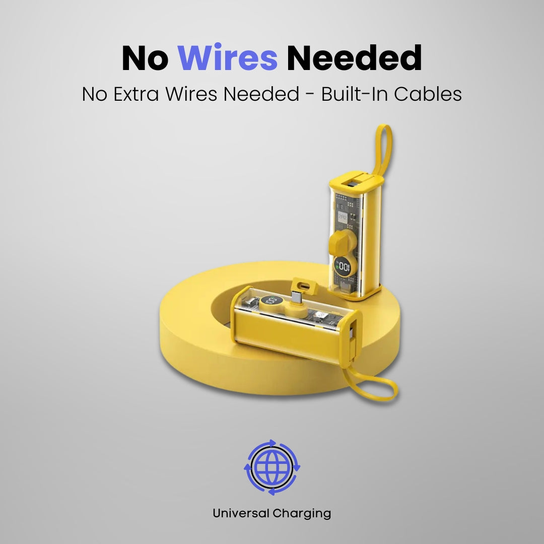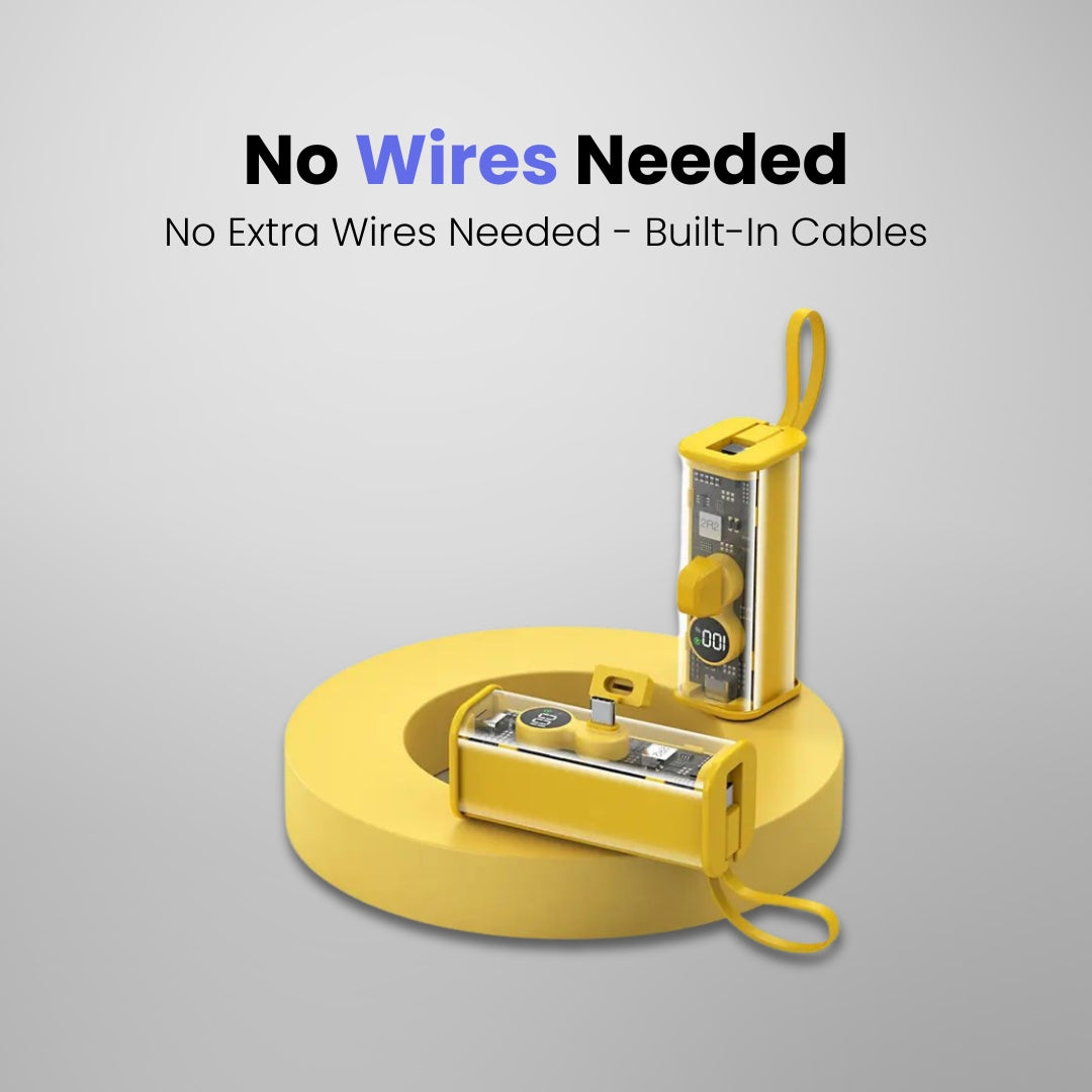 Say goodbye to tangled wires. Our power bank comes with a built-in cable, making charging hassle-free and convenient.
