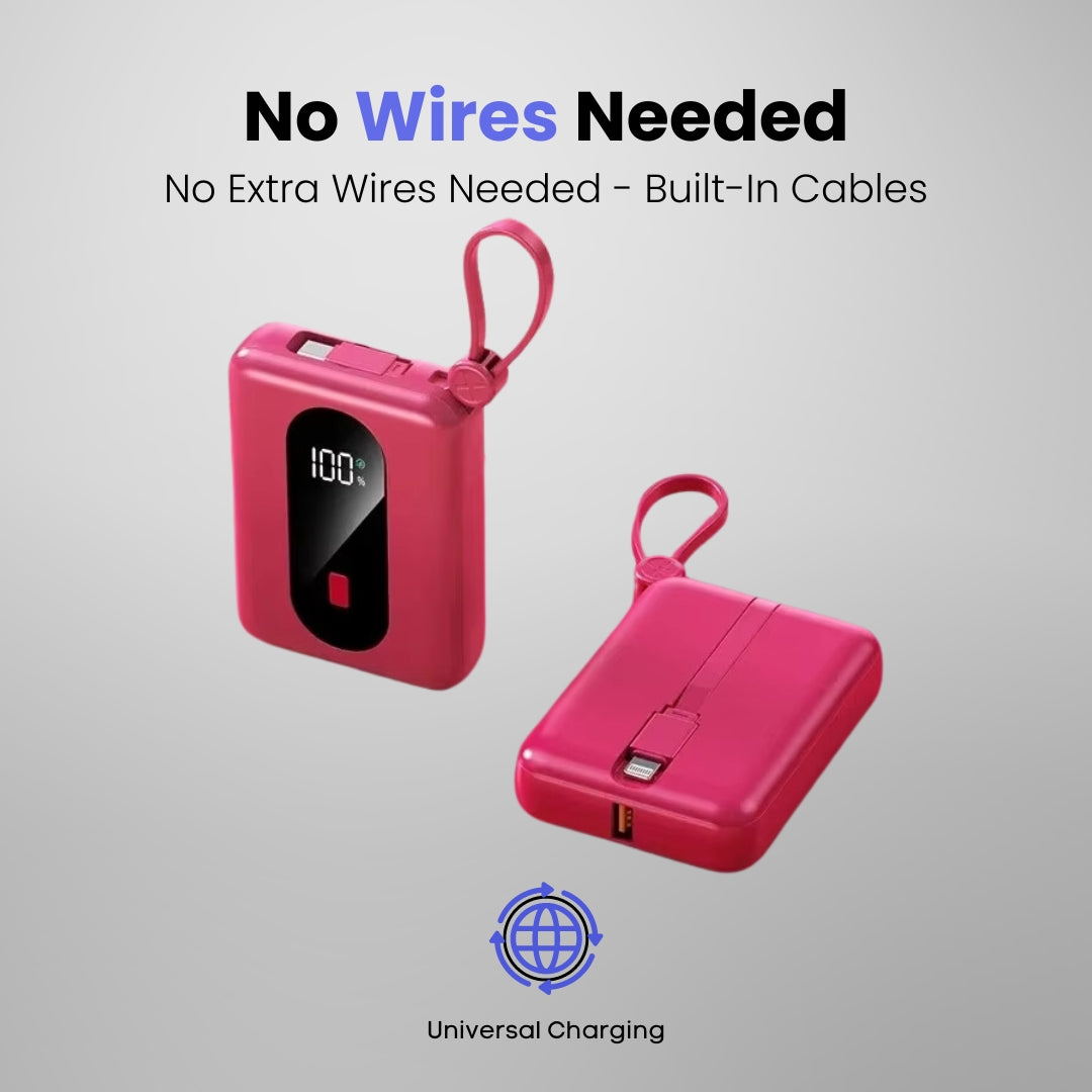 "This power bank is perfect for my busy lifestyle. It's lightweight, fits in my pocket, and the built-in wire means no more tangled cables."